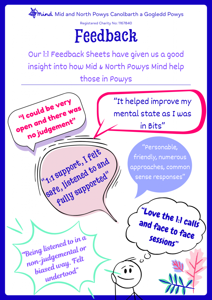 We are always grateful to receive feedback on our services and we’ve had some wonderful feedback recently for our 1 to 1 Support Service.  Although we like to celebrate how people feel about our services and how they have helped, less positive feedback is also welcome to help us learn and improve.